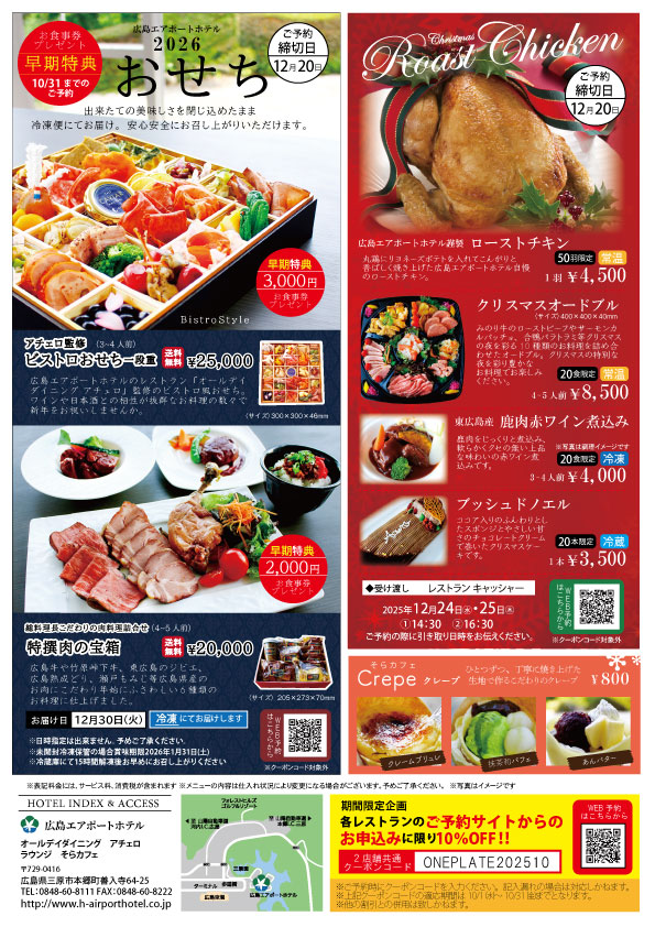 電話/0848-60-8188(広島エアポートホテル レストラン担当)
