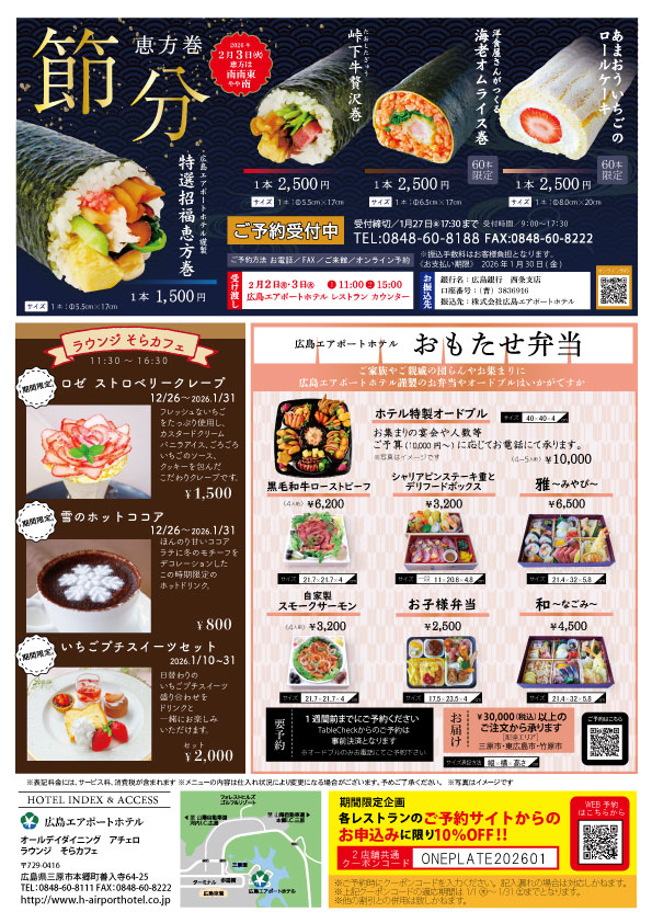 2月3日の節分に広島エアポートホテルの恵方巻はいかがですか。