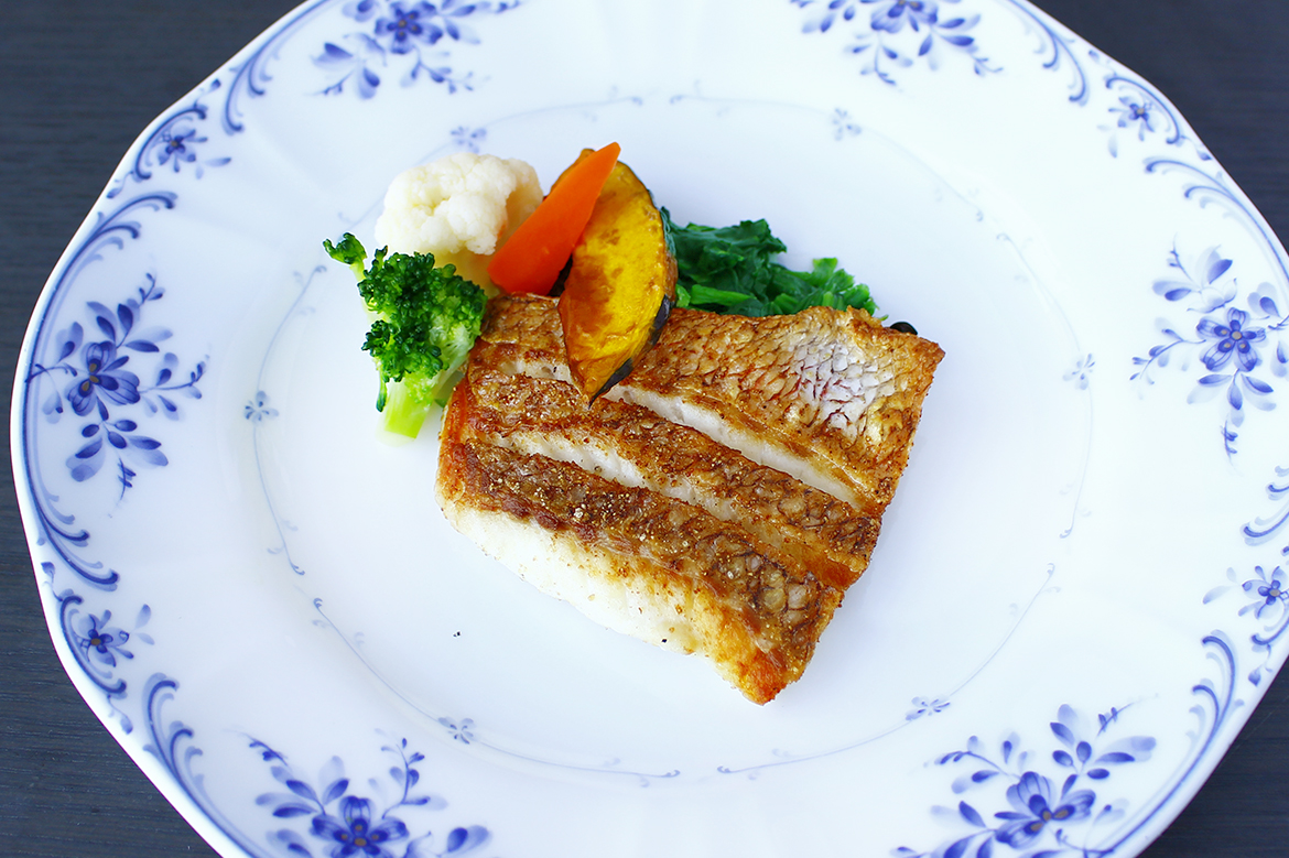 表面をカリッと身はふっくらと焼き上げた瀬戸内鯛。
