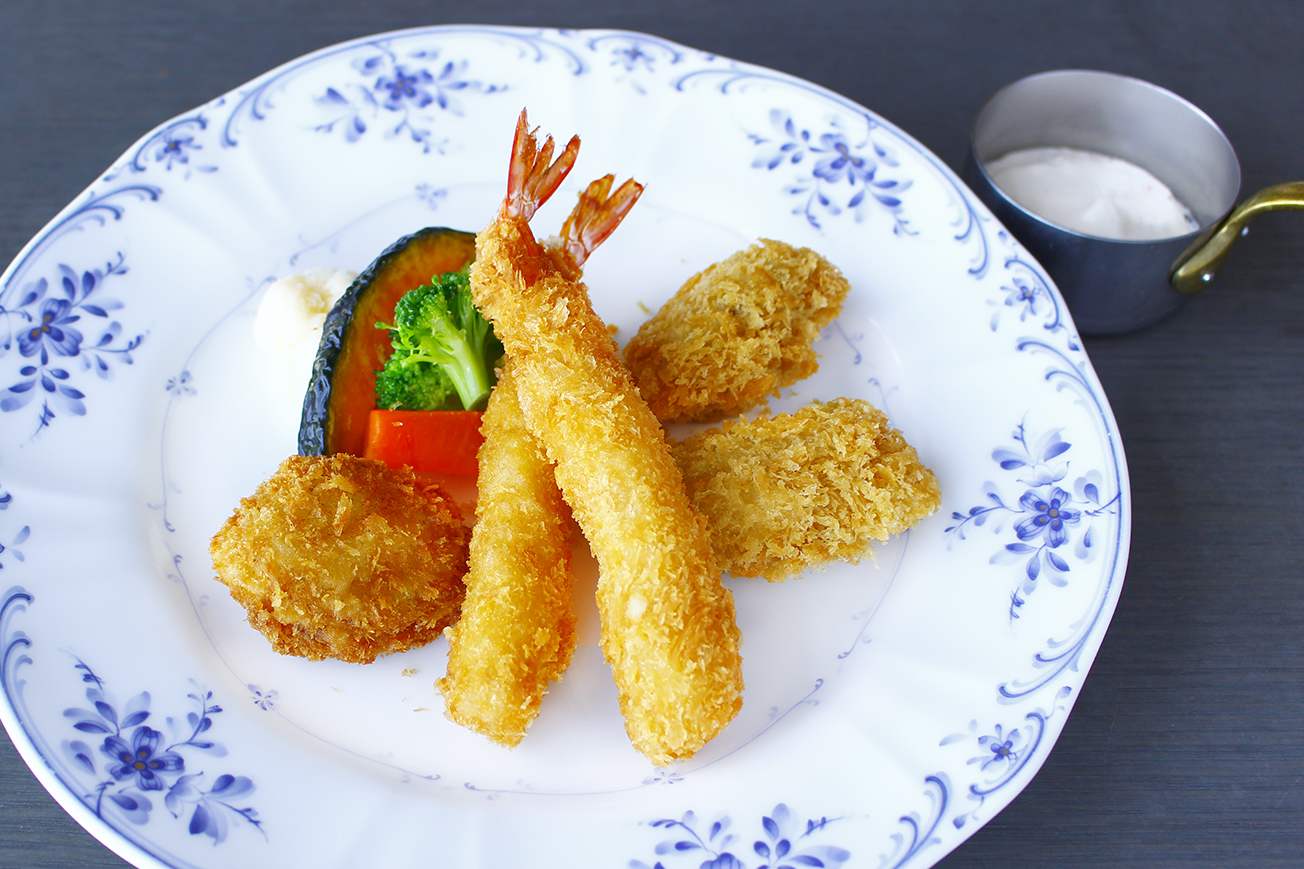 海老や牡蠣、ホタテをサクサクの衣で揚げた